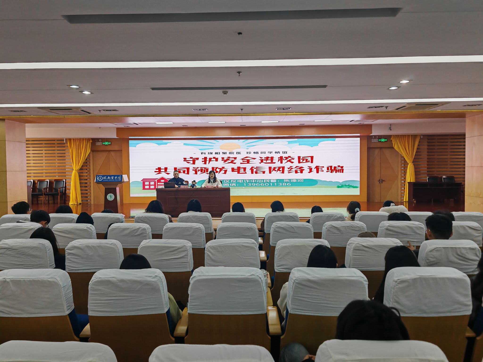 为切实提升大学生防范电信网络诈骗的意识和能力,守护青年学子的财产安全,营造平安校园环境,12 月 14日下午 3 点,麻醉学院在图书馆三楼报告厅开展了反诈专题宣传讲座。讲座由学院党委副书记张卉主持,弋江区反诈中心朱滦河警官主讲,学院师生代表齐聚现场,共同学习反诈知识。