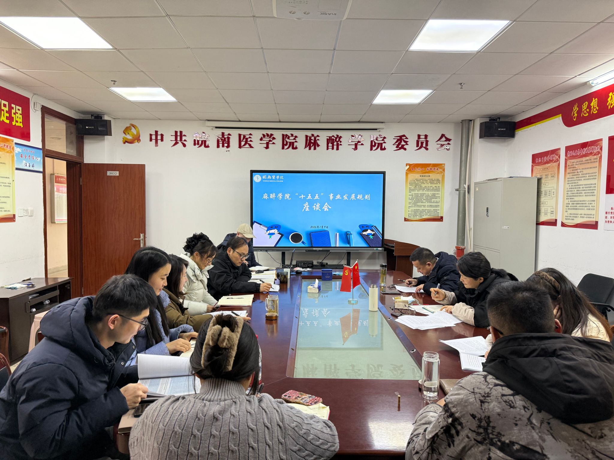 为系统谋划学院未来五年发展路径,进一步明晰发展定位和重点任务,我院于2026年1月9日上午召开了“十五五”事业发展规划座谈会。会议由麻醉学院院长郭文俊主持,党委书记、副院长崔晓霞,党委副书记张卉及校本部全体教师参加。