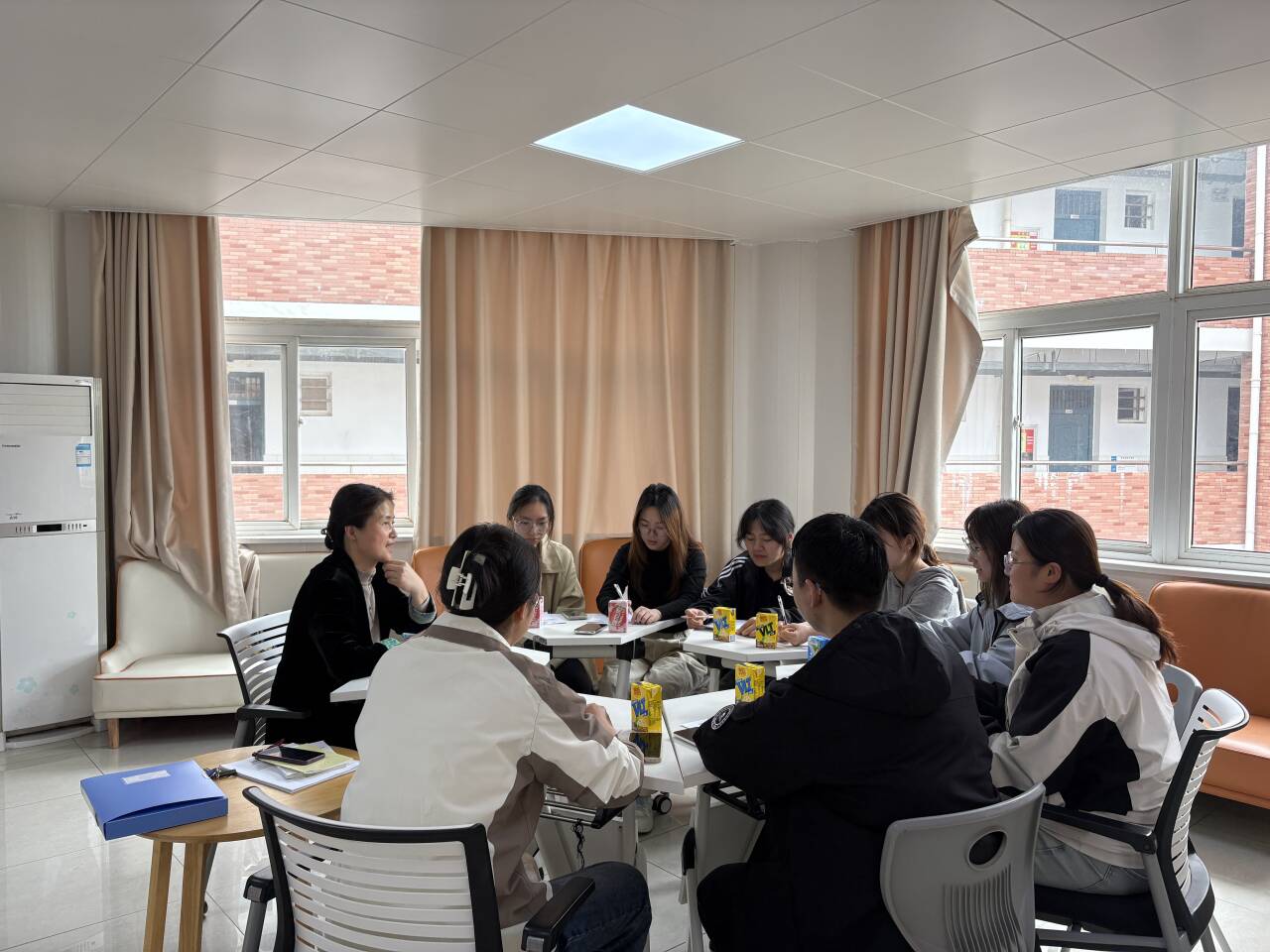 为持续深化树立和践行正确政绩观学习教育,密切学院领导与青年大学生的联系,引导学生骨干特别是入党积极分子端正价值追求、把稳思想之舵,4月15日下午,麻醉学院“书记面对面”专题交流活动在滨江校区(北区)六号学生楼“一站式”社区活动室举行。学院党委书记崔晓霞同志与2024级8名入党积极分子代表围桌而坐,围绕时事热点、学业发展、学院建设等话题,展开了一场真诚而深入的对话。